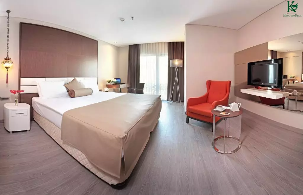 صبحانهای غنی روزانه بهسبک بوفه سرو میشود و رستوران آلاکارته، غذاهای ترکی و بینالمللی را ارائه میدهد. با گوش دادن به موسیقی زنده آرام بخش، می توانید از نوشیدنی های خنک در بار لابی لذت ببرید. سرویس اتاق نیز ارائه می شود.