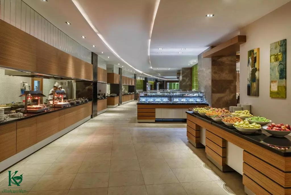به صورت بوفه باز میل کنید. همچنین 2 رستوران à la carte برای فصل زمستان و 4 رستوران à la carte برای فصل تابستان وجود دارد که انواع غذاهای سنتی ترکی، شرق دور و غذاهای ایتالیایی را سرو می کنند. این ملک همچنین دارای بارهایی است که در آن می توانید انواع نوشیدنی ها و نوشیدنی ها را میل کنید.