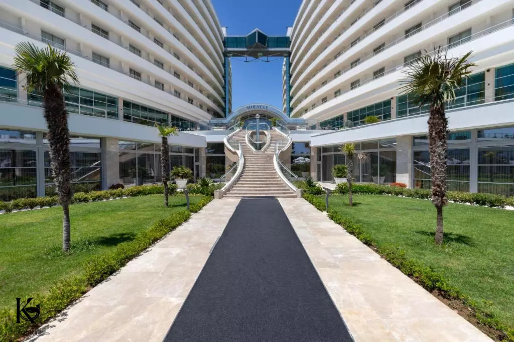 این هتل درست در کنار آب واقع شده است و دارای یک استخر روباز، استخر سرپوشیده و یک منطقه ساحلی خصوصی با صندلیها و چترهای آفتابی رایگان است. حمام ترکی و سونا به همراه وای فای در مکان های عمومی رایگان است.اتاق های فرش شده هتل میراکل ریزورت دارای تهویه مطبوع، تلویزیون ماهواره ای و بالکن هستند. حمام دارای لوازم آرایش رایگان و سشوار است. بیشتر اتاق ها دارای منظره دریا هستند.رستوران اصلی هتل صبحانه، ناهار و شام را به صورت بوفه سرو می کند. 3 رستوران آلاکارته غذاهای مکزیکی، ترکی و دریایی را ارائه می دهند. میهمانان میتوانند در یکی از 4 بار نوشیدنیهای خنک میل کنند.4 زمین تنیس، 2 زمین فوتبال و 1 زمین بسکتبال وجود دارد. مرکز تناسب اندام، اتاق ماساژ و اتاق بازی در محل موجود است. بازدیدکنندگان کوچکتر می توانند از زمین بازی، 2 استخر کودکان و سرسره های آبی بهره مند شوند.امکانات ورزش های آبی و سرویس اتاق ارائه می شود. فرودگاه آنتالیا 19 کیلومتر تا هتل میراکل ریزورت فاصله دارد.
