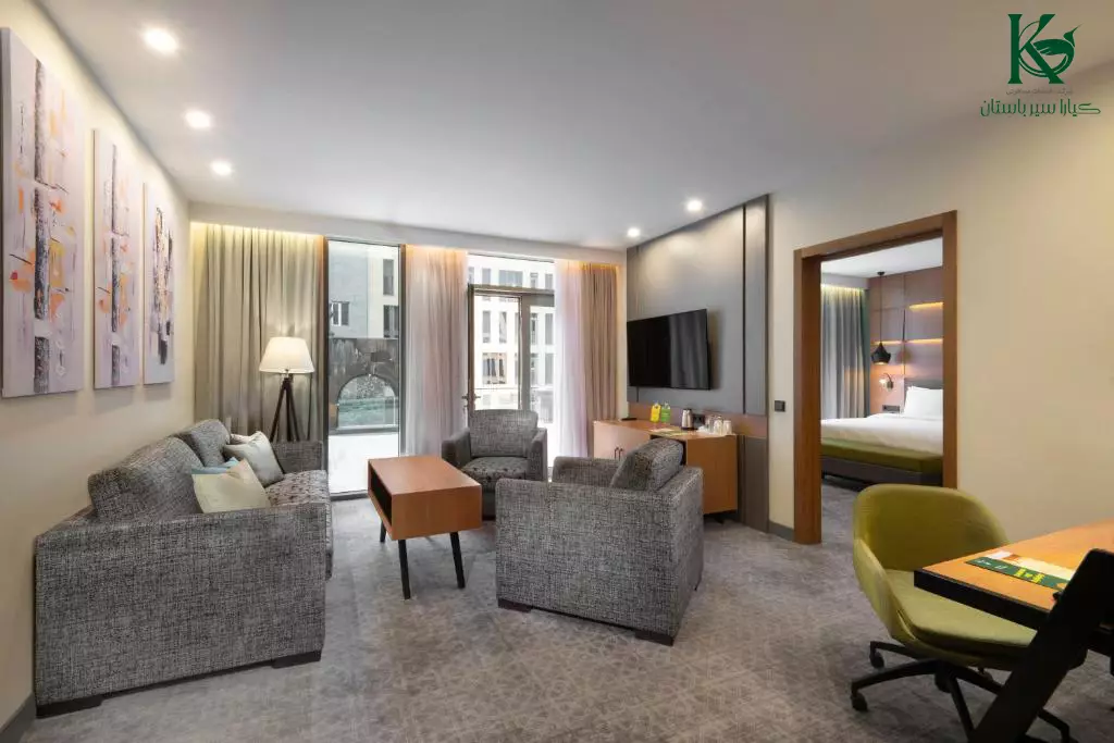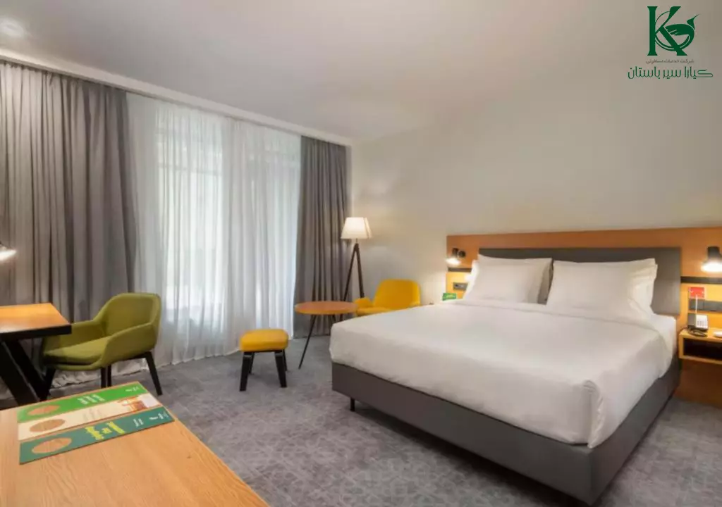 هتل هالیدی این ایروان 656 فوت از میدان جمهوری فاصله دارد ، دارای اتاقهای تهویهکننده و بار است. این ملک با داشتن رستوران، مرکز تناسب اندام، استخر سرپوشیده و حمام نیز دارد. این اقامتگاه دارای پذیرش 24 ساعته، سرویس اتاق و صرافی برای مهمانان است.