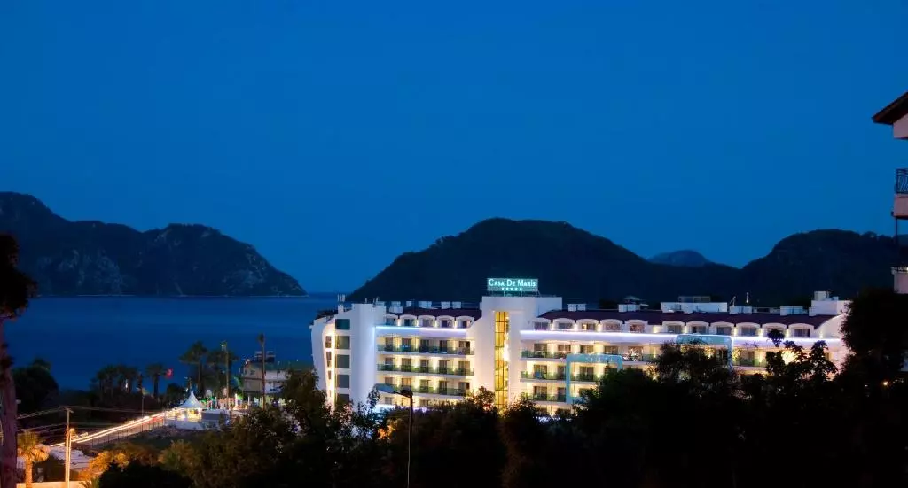 این هتل تنها چند قدم تا ساحل دریا فاصله دارد، دارای استخر روباز، ساحل خصوصی و وای فای رایگان است.اتاق هایی با تهویه مطبوع با تلویزیون ماهواره ای و بالکن ارائه می دهد. تمام اتاقهای Casa De Maris Spa & Resort Hotel Adult Only 14 Plus دارای دکوراسیون مدرن با رنگهای پاستلی هستند.همه آنها یک مینی بار و حمام اختصاصی دارند.برخی از سوئیتهای بزرگ دارای منظره دریا هستند. این هتل دارای بسیاری از رستوران های آلاکارته و بوفه است که غذاهای سنتی و بین المللی و غذاهای دریایی سرو می کنند.در اسنک بار استخر Caria و اسنک بار Pier Beach می توانید از تنقلات و نوشیدنی های مختلف لذت ببرید.یک شیرینی فروشی نیز وجود دارد که در آن می توانید انواع شیرینی را پیدا کنید. مرکز اسپا شامل حمام ترکی، سونا و خدمات ماساژ است.سالن بدنسازی در خدمت میهمانان است.زمین بازی کودکان نیز وجود دارد. کمتر از 3 کیلومتر از مرکز شهر مارماریس، و 100 کیلومتر تا فرودگاه دالامان فاصله دارد.