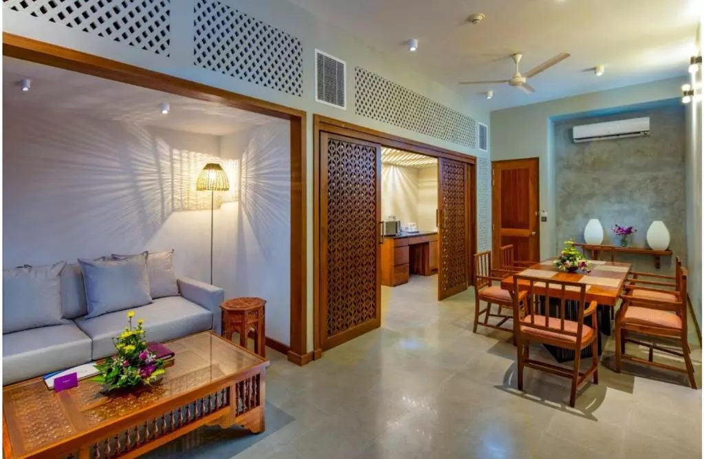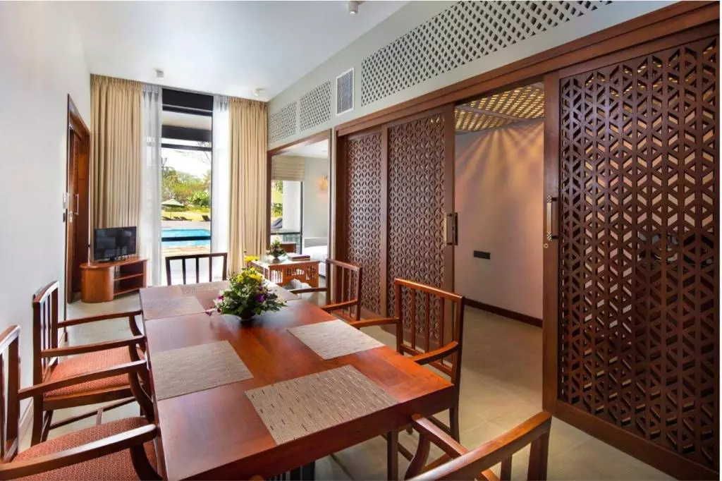 این هتل که توسط درختان نارگیل و چمنهای سبز وسیع احاطه شده است، دارای اتاقهای روشن و بزرگ با بالکن خصوصی است. دارای یک استخر روباز و 6 رستوران غذا و نوشیدنی است.اتاق های رو به دریا دارای تهویه مطبوع و مجهز به مینی بار، گاوصندوق و تلویزیون ماهواره ای هستند. حمام خصوصی شامل دوش و سشوار است.فرودگاه بین المللی بندرانایکه تقریباً 55 کیلومتر با هتل فاصله دارد.مهمانان به استودیوی تناسب اندام و اسپا دسترسی دارند که دارای سونا و اتاق بخار است. خدمات خشکشویی، اتو و ترانسفر فرودگاهی نیز موجود است.مجموعهای از مزهها و کبابها در رستوران عربی Mezz2 سرو میشود، در حالی که بستنی دستساز، شربتها و ماستهای یخزده در I.C.E Ice Cream Emporium موجود است.