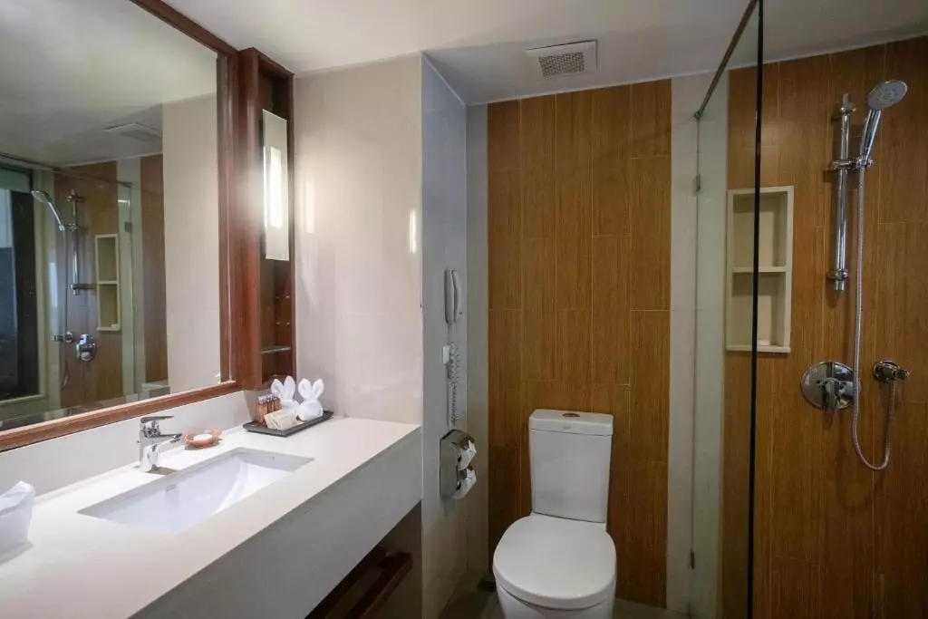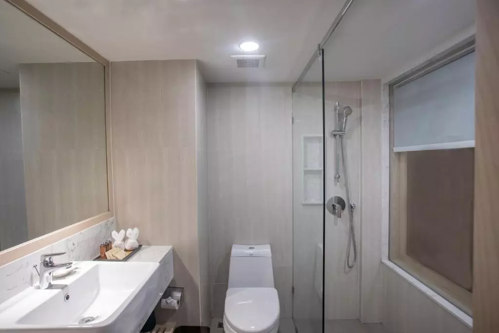 حمام اختصاصی دارای لوازم بهداشتی و سشوار است.