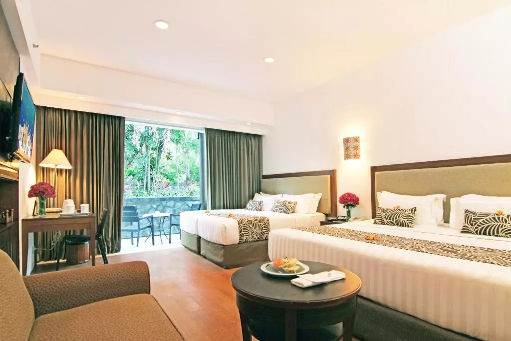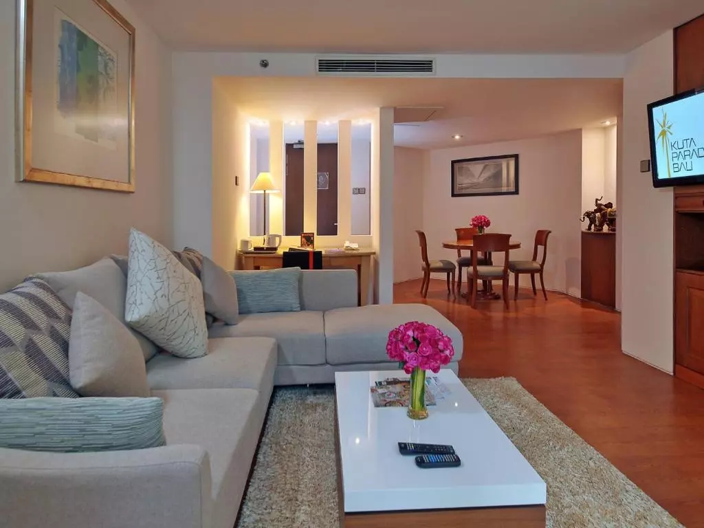 اتاقهای بزرگ هتل Kuta Paradiso دارای فضای داخلی مدرن با کفپوش چوبی هستند. هر اتاق دارای مینی بار، چای/قهوه ساز و تلویزیون ماهواره ای است. حمام اختصاصی مرمری مجهز به وان است.