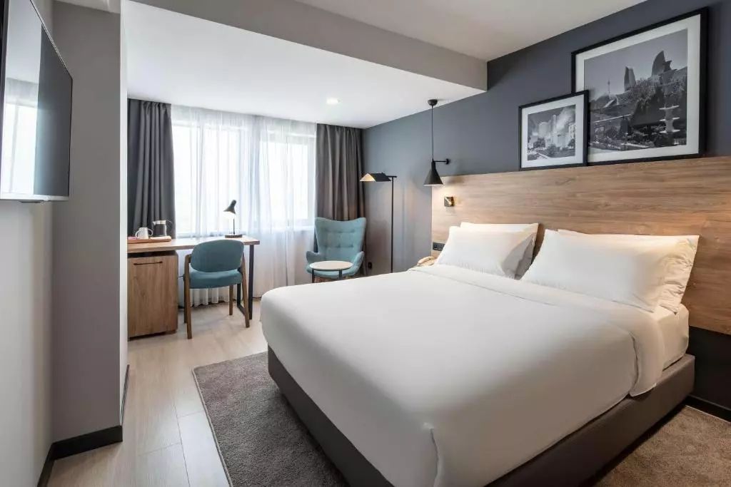 این هتل مرکزی با چشمانداز عالی از بندر دریای خزر و شهر قدیمی باکو، مرکز تناسب اندام، رستوران با بار، و اتاقهای زیبا با تلویزیون صفحهتخت ارائه میکند. وای فای رایگان در سراسر هتل در دسترس است.اتاق های بزرگ و دارای تهویه مطبوع هتل پارک این بای رادیسون باکو مجهز به نوشیدنی های گرم و مینی بار هستند.بوفه صبحانه هوشمند در رستوران گلوری ارائه می شود و مهمانان می توانند از غذاهای بین المللی لذت ببرند. مهمانان می توانند مناظر بلوار ساحلی را تماشا کنند و از نوشیدنی در بار ویکتور لذت ببرند.میدان فواره 10 دقیقه پیاده از هتل فاصله دارد. پارکینگ رایگان در نزدیکی هتل در دسترس است.