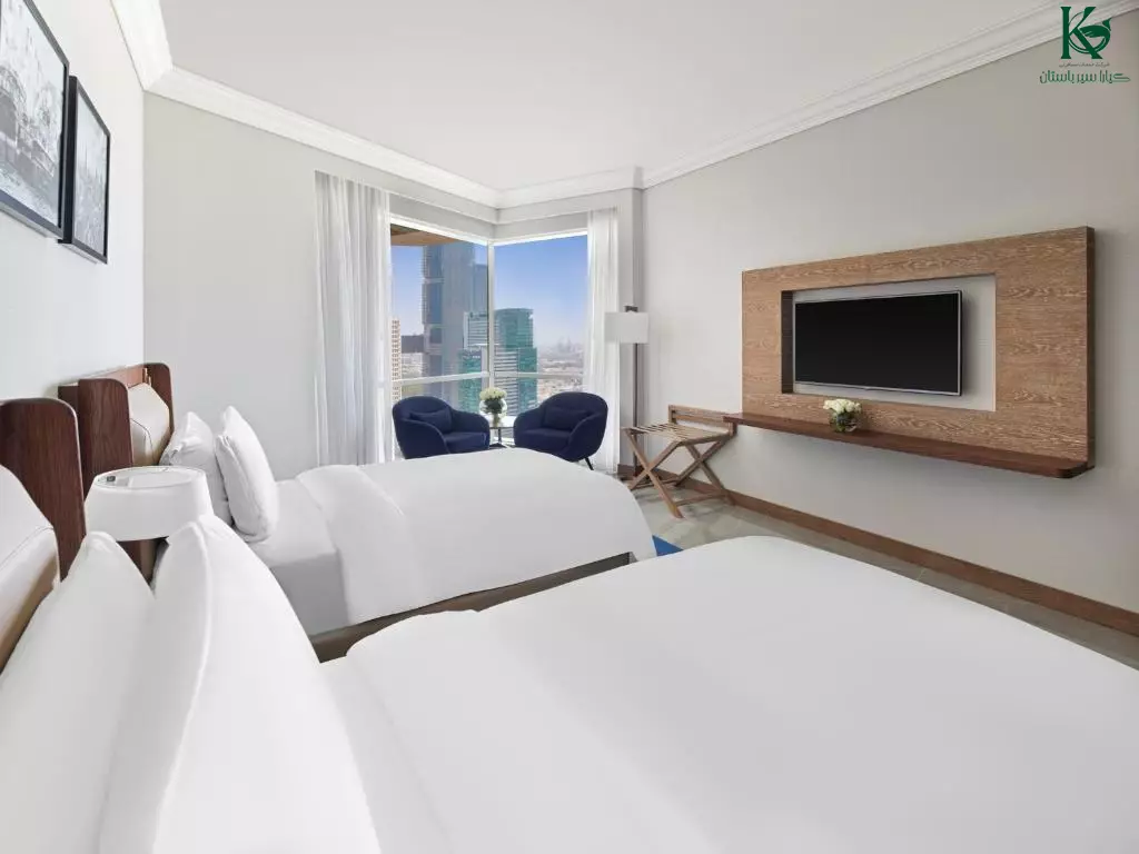 همه 394 اتاق و سوئیت در Fairmont Dubai ظرافت کلاسیک را با دکوراسیون و امکانات مدرن ترکیب می کنند. هر اتاق دارای پنجرههایی از کف تا سقف با چشمانداز پانوراما از خلیج فارس و خط افق شهر است. حمام های بزرگ محصولات Le Labo را ارائه می دهند.