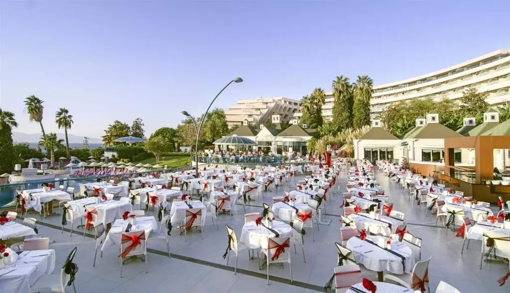 این استراحتگاه ساحلی با یک استخر بینهایت مشرف به دریای اژه، اتاقهایی با چشمانداز پانوراما به دریا ارائه میدهد. این هتل در 3 کیلومتری مرکز کوش آداسی قرار دارد و دسترسی به وای فای رایگان دارد.اتاقهای مجهز به تهویه مطبوع The Grand Blue Sky International روشن و جادار هستند. همه آنها دارای بالکن خصوصی، کانال های تلویزیونی ماهواره ای و حمام خصوصی با وان هستند.میهمانان می توانند از میان 3 رستوران آلاکارته برای 1 شب در هر اقامت انتخاب کنند و مجموعه ای از غذاهای دریایی تازه، غذای ایتالیایی و غذاهای سنتی عثمانی را میل کنند.امکانات The Grand Blue Sky از مدرسه غواصی گرفته تا زمین تنیس و حمام است. هتل برنامه های سرگرمی شبانه نیز برگزار می کند و یک تیم سرگرمی حرفه ای کلوپ کودکان را اداره می کند.جاذبههای اطراف عبارتند از Kirazli، روستای سنتی ترک و پارک ملی شبه جزیره دیلک، که هر دو با 30 دقیقه رانندگی فاصله دارند. فرودگاه عدنان مندرس ازمیر 81 کیلومتر با هتل فاصله دارد.