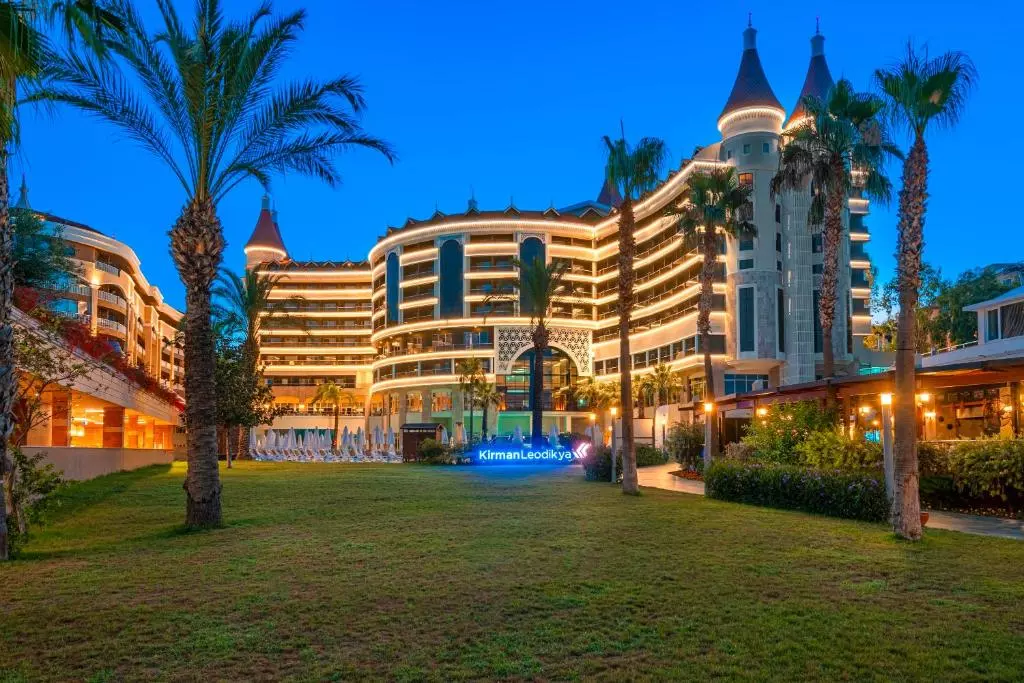 این هتل درست در کنار ساحل، دارای استخرهای سرپوشیده/روباز، امکانات اسپا و یک منطقه ساحلی خصوصی است. اتاق هایی با تهویه مطبوع با تلویزیون ماهواره ای و بالکن ارائه می دهد.اتاق های Kirman Leodikya Resort دارای مبلمان مدرن هستند. همه آنها دارای حمام خصوصی با امکانات رفاهی و سشوار هستند.صبحانه روزانه به صورت بوفه سرو می شود. در رستوران هتل می توانید طعم غذاهای آسیایی و مدیترانه ای و غذاهای محلی مانند کباب را بچشید. بارها نوشیدنیهای تازه و تنقلات سرو میکنند.امکانات اسپا شامل حمام ترکی، سونا و اتاق تناسب اندام است که خدمات ماساژ نیز ارائه داده میشود. در Kirman Leodikya Resort می توانید یک بازی دارت، بیلیارد و تنیس روی میز انجام دهید. همچنین مینی کلوب برای کودکان وجود دارد.هتل ریزورت لئودیکیا فقط 35 کیلومتر تا مرکز شهر ساید فاصله دارد و 40 دقیقه با ماشین تا آبشار ماناوگات فاصله دارد. فرودگاه آنتالیا 2 ساعت با ماشین تا هتل فاصله دارد. پارکینگ خصوصی رایگان در هتل موجود است.
