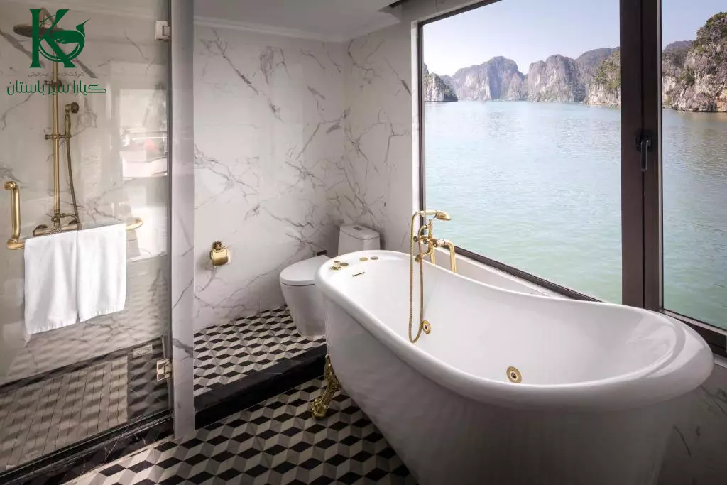 کشتی کروز پرزیدنت واقع در Ha Long، 600 متری ساحل Tuan Chau، دارای اقامتگاه با رستوران، بار و تراس است. این کشتی کروز 5 ستاره خدمات اتاق ارائه می دهد. کروز دارای یک استخر در فضای باز، سرگرمی های عصرانه و یک میز پذیرش 24 ساعته است.در کروز، هر اتاق دارای بالکن با منظره دریا است. اتاق های کشتی کروز پرزیدنت دارای کمد لباس، تلویزیون صفحه تخت و حمام اختصاصی هستند.مهمانان اقامتگاه می توانند از صبحانه قاره ای لذت ببرند.مهمانان میتوانند از فعالیتهایی مانند ماهیگیری در هالانگ و اطراف آن لذت ببرند.بندر Tuan Chau در 1.2 کیلومتری کروز، در حالی که تله کابین Ha Long Queen در 13 کیلومتری کروز قرار دارد. نزدیکترین فرودگاه بینالمللی Cat Bi است که در 30 کیلومتری هتل قرار دارد و این هتل خدمات ترانسفر فرودگاهی را ارائه میدهد.