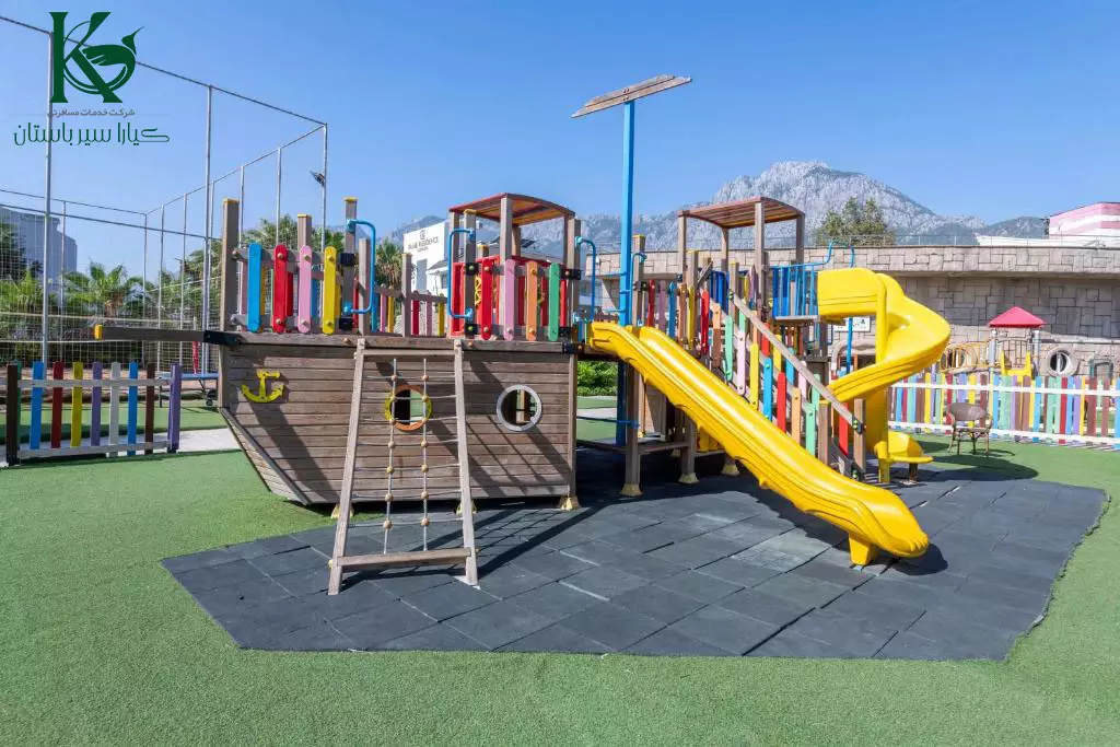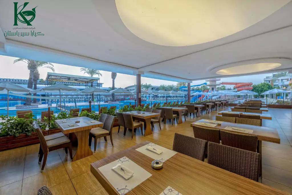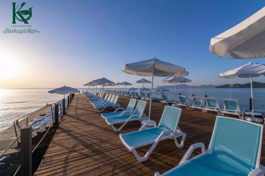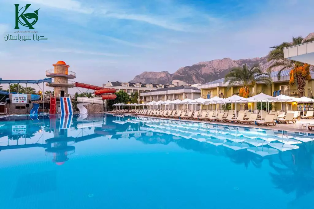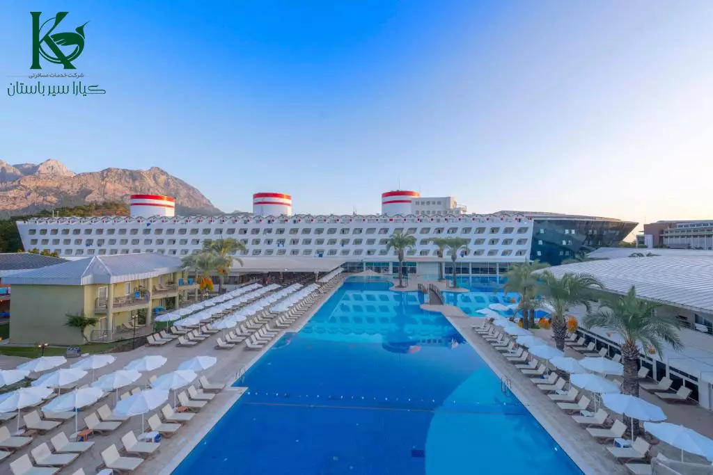 این تفرجگاه 5 ستاره در کمر که شبیه کشتی طراحی شده است، از ساحل شنی طولانی و صحنه شگفت انگیز استخر با پارک آبی برخوردار است.