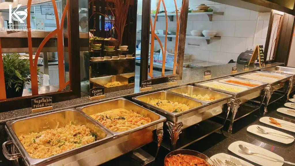 کافی شاپ برادوی غذاهای غربی ارائه می دهد، در حالی که غذاهای کره ای باربیکیو در رستوران کره ای جینگسن موجود است.
