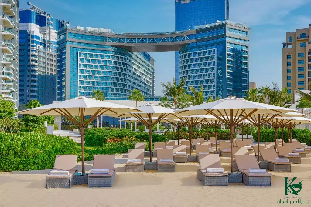 ساحل پالم وست 1.3 کیلومتر و ساحل فروند پی 1.8 کیلومتر با هتل فاصله دارند. نزدیکترین فرودگاه، فرودگاه بینالمللی آل مکتوم است که در 31 کیلومتری هتل ان اچ کالکشن دبی د پالم قرار دارد.