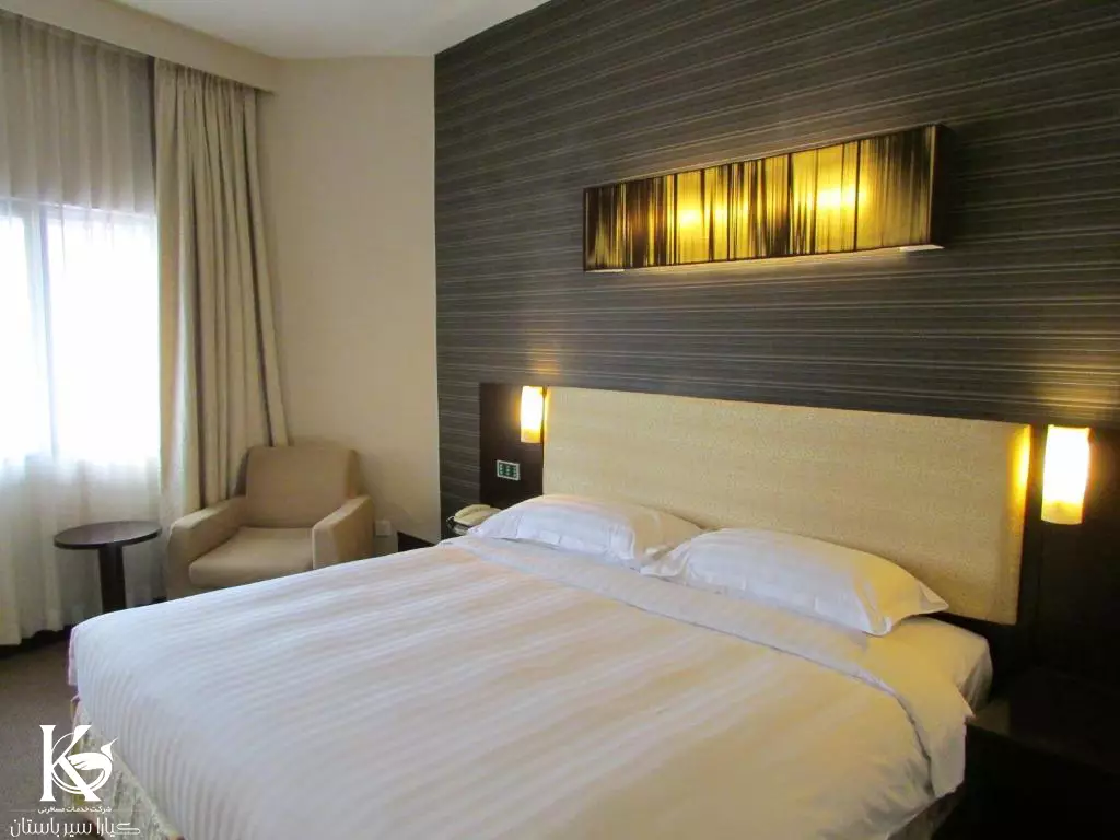 اتاقهای دارای تهویه مطبوع در هتل رویال ات کوئینز که با سایههای خنثی دلپذیر تزئین شدهاند، راحتی با کفهای فرش شده و امکانات تهیه چای/قهوه را ارائه میدهند. میز کار و گاوصندوق نیز ارائه شده است.
