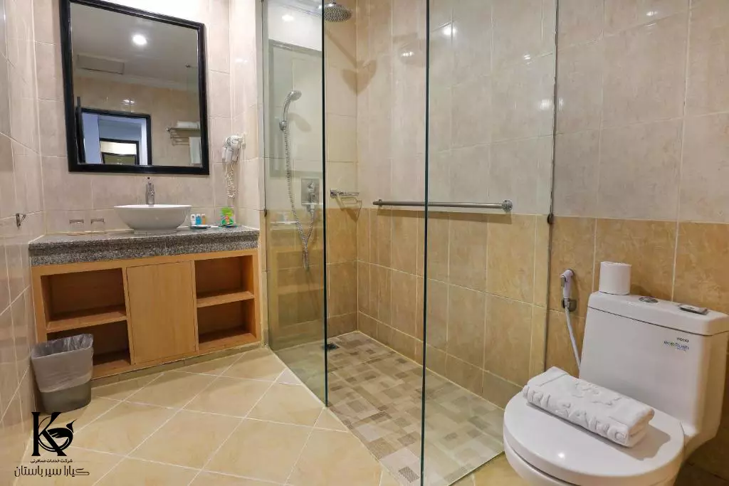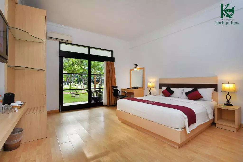 اتاقها به زیبایی تزئین شدهاند و روشن و دلباز با بالکنهای خصوصی مشرف به باغ محوطهسازیشده هتل هستند. حمام های مجلل دارای وان و سشوار برای راحتی مهمانان هستند.