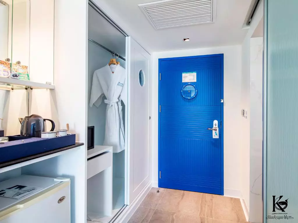 تم های آبی و سفید در هر اتاق وجود دارد. هر کدام دارای امکانات تهیه چای/قهوه و تلویزیون صفحه تخت با کانال های کابلی هستند. حمام و دمپایی ارائه می شود.