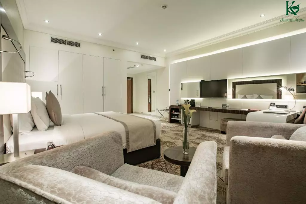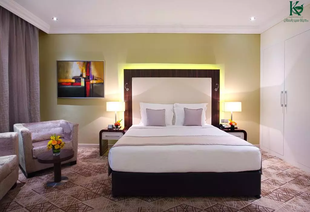 رستوران Monarch طیف وسیعی از غذاهای بین المللی و عربی را با گزینه های آلاکارته و بوفه ارائه می دهد، در حالی که کافه بازرکان غذاها و شیرینی های سبک را ارائه می دهد. سرویس اتاق 24 ساعته نیز در دسترس است. سالن قلیان انواع طعم های قلیان را ارائه می دهد.