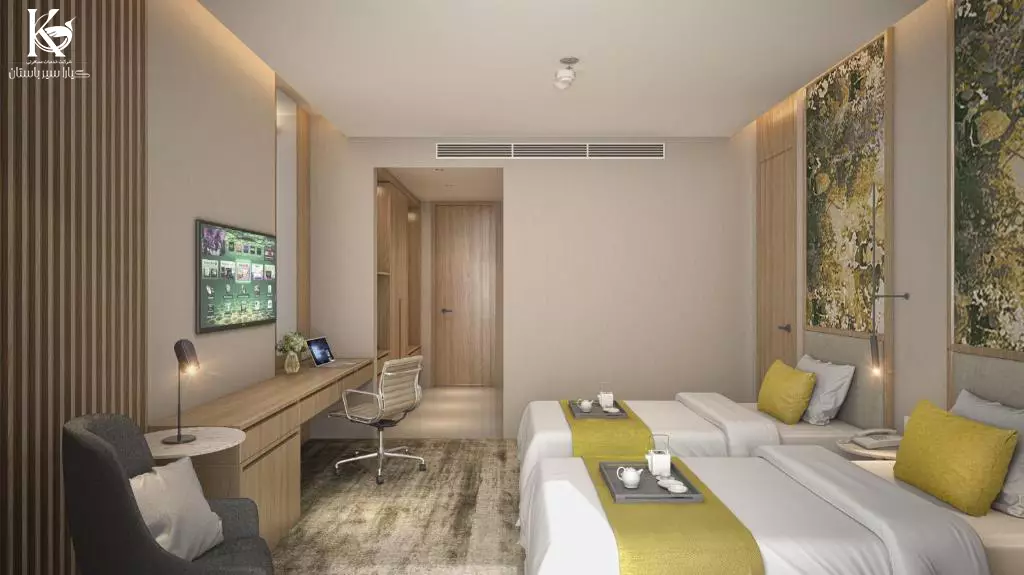 همه اتاق ها دارای میز هستند. هر اتاق دارای تهویه مطبوع و تلویزیون صفحه تخت است و واحدهای خاصی در هتل هالیدی این دوبی بیزینس بی ، منظره شهر دارند. در اقامتگاه، اتاق ها با ملحفه و حوله همراه هستند.