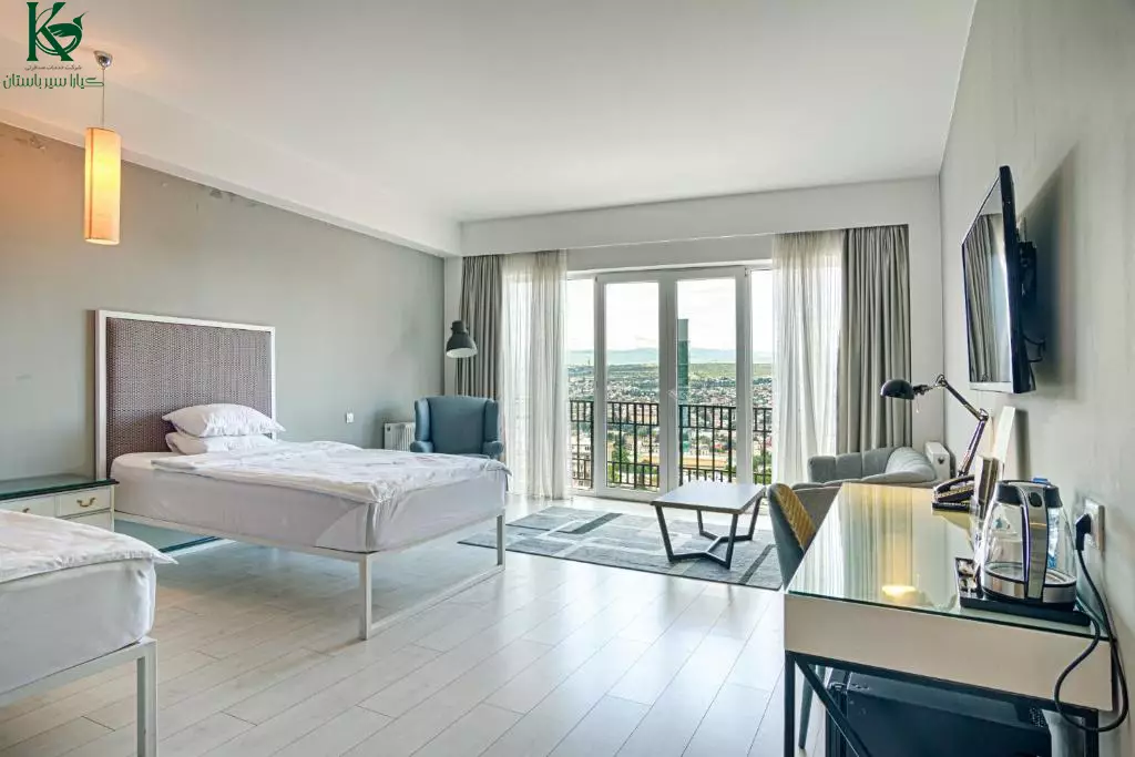 هتل تراس بوتیک تفلیس، هتلی در شهر زیبای تفلیس است که از موقعیت مکانی خوبی برخوردار بوده و با فراهم کردن امکانات رفاهی مطلوب و مناسب سعی در تامین اقامت راحت و به یاد ماندنی برای مهمانان دارد. تاکنون مهمانانی که در این هتل اقامت داشتهاند، از راحتی و آسایش اتاقهای هتل بسیار راضی و خرسند بودهاند. مهمانانی که هتل تراس بوتیک تفلیس را در سفر به تفلیس برای اقامت انتخاب میکنند، میتوانند ضمن تجربه اقامت دلنشین و برخورداری از امکانات مناسب، به بسیاری ازجاهای دیدنی تفلیس از قبیل مقبرههای متاتسمیندا، سالن اپرا و باله تفلیس، مراکز خرید تفلیس، کاخ ریاست جمهوری تفلیس، پل صلح و... دسترسی آسان داشته باشند. بناهای جذاب تاریخی تفلیس با معماری منحصر به فرد و زیبایشان میلیونها گردشگر را از سراسر جهان به سمت خود جذب میکنند. یکی از جذابترین جاذبهها هم برای بزرگسالان و هم برای کودکان باغ وحش تفلیس است. در این مکان میتوانید انواع حیوانات وحشی و اهلی را از نزدیک تماشا کنید. پس از پشت سر گذاشتن یک روز پر جنب و جوش در تفلیس، استراحت در هتل تراس بوتیک تفلیس خستگی کل روز را از تنتان رفع میکند. کارکنان خوش برخورد و مجرب هتل The Terrace Boutique Hotel Tbilisi به طور شبانه روزی تلاش میکنند تا اقامتی به یاد ماندنی برای شما رقم بزنند.