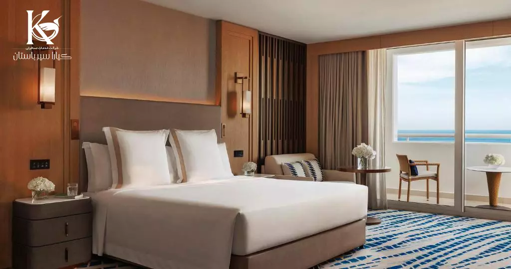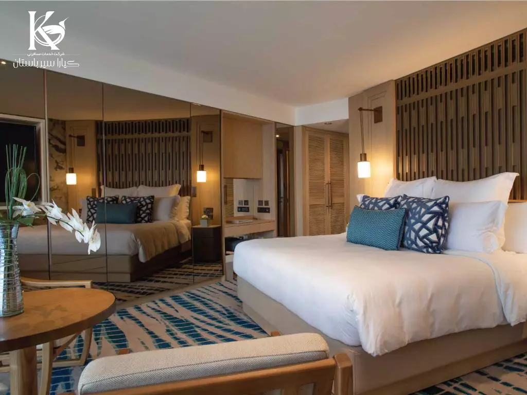 این هتل لوکس 5 ستاره دبی دارای ساحل خصوصی است و دارای بیش از 10 رستوران و بار، 5 استخر است. مهمانانی که در هر اتاق هتل جمیرا بیچ اقامت می کنند می توانند از دسترسی مستقیم نامحدود رایگان به پارک آبی Wild Wadi™ لذت ببرند.تمامی اتاق ها، سوئیت ها و ویلاهای هتل جادار هستند و دارای پنجره هایی از کف تا سقف هستند که به خلیج فارس و برج العرب جمیرا مشرف می شوند. هر کدام دارای یک تلویزیون LCD تعاملی با صفحه نمایش عریض، سرویس نوبت صبح و دسترسی رایگان به وای فای هستند.