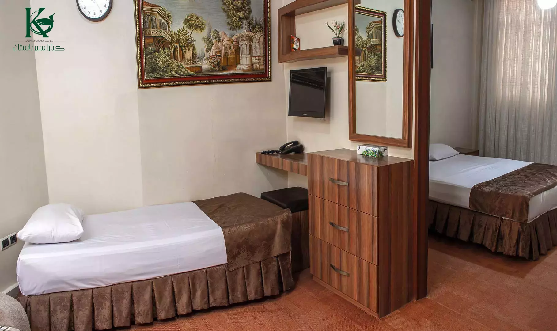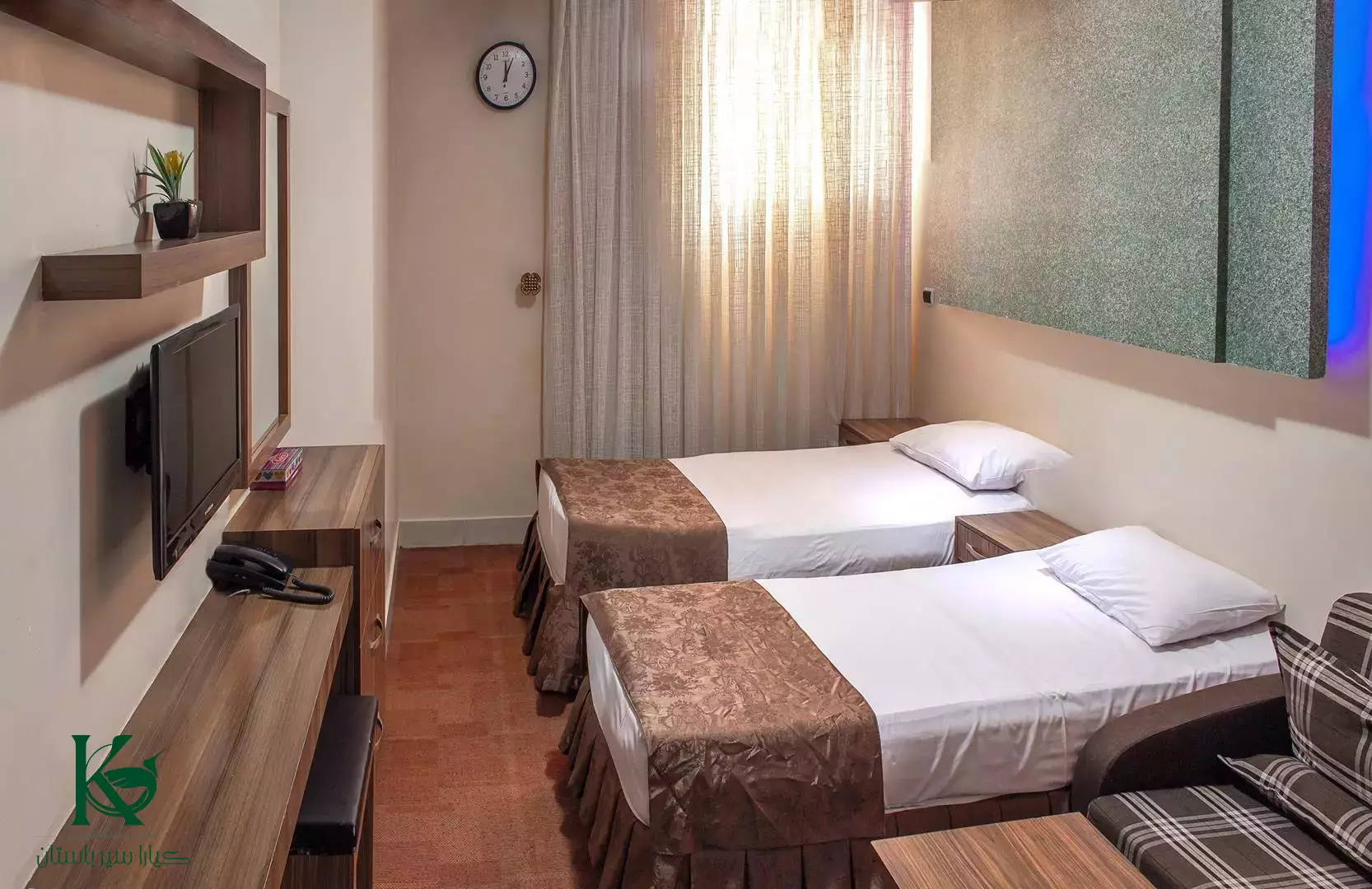 هتل یاقوت شرق مشهد (Yaqoot Sharq Hotel) از هتل های دو ستاره مشهدالرضا است که در یکی از خیابان های نزدیک به حرم قرار دارد. این هتل دو ستاره که در سال 1393 فعالیت خود را آغاز کرده، به دلیل فاصله اندک تا حرم، مورد استقبال مسافران و زائران زیادی واقع شده است. این مجموعه اقامتی هفت طبقه با 28 واحد اقامتی ساده و تمیز، میزبانی خوب برای مسافران مشهد به شمار میرود. قیمت رزرو هتل یاقوت شرق مشهد بسته به زمان سفر متفاوت خواهد بود اما به صورت کلی این هتل جزو هتل های مقرون به صرفه مشهد به حساب میآید. هتل یاقوت شرق در اکثر ایام سال، برای جلب رضایت بیشتر افراد، تخفیفهای خوبی را در نظر میگیرد. فاصله هتل یاقوت شرق مشهد تا حرم مطهر امام رضا علیه السلام و بازار رضا 1.6 کیلومتر است. اگر قصد خرید سوغاتیهای مشهد را دارید به راحتی میتوانید سری به بازار رضا بزنید و خرید خود را انجام دهید. بازار هفده شهریور، مراکز خرید کیمیا و آسمان 2 هم فاصله کوتاهی تا هتل دارند. عزیزانی که با ماشین شخصی به مشهد سفر میکنند این موضوع را در نظر داشته باشند که ظرفیت پارکینگ هتل یاقوت شرق مشهد بسیار محدود است و برای استفاده از آن، باید از قبل با هتل هماهنگ شود.