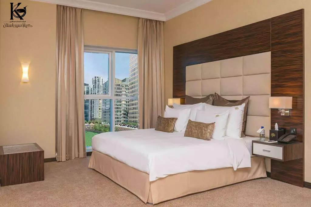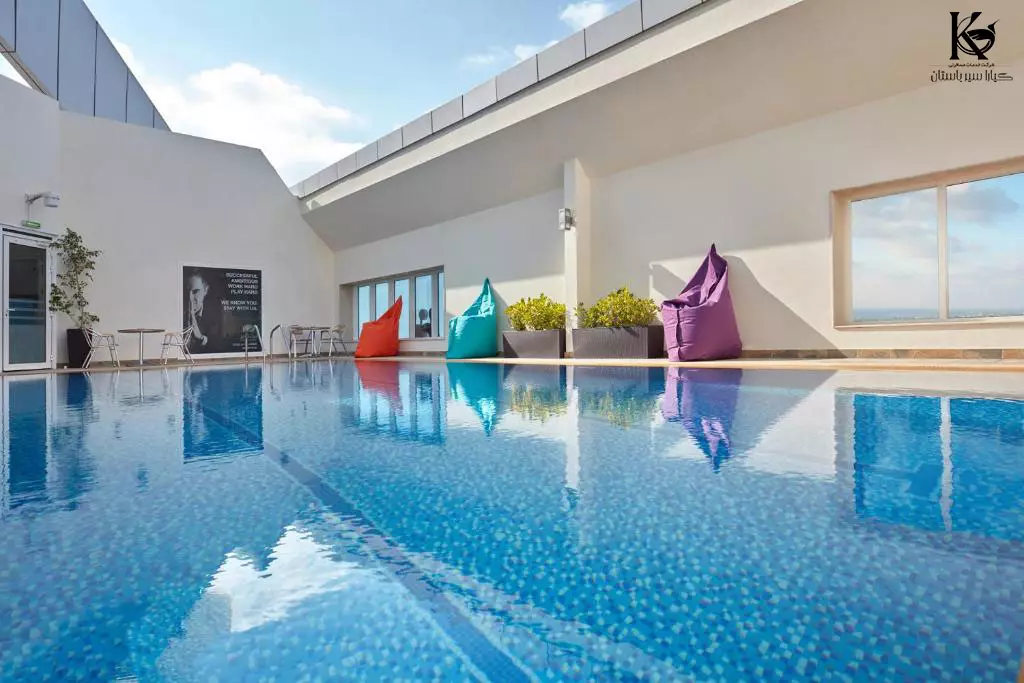 امکانات شامل یک استخر روباز و یک سالن بدنسازی بوتیک است که هر دو در پشت بام قرار دارند و مناظری پانوراما از خلیج عربی و شهر را ارائه می دهند. 1 رستوران ناهار خوری تمام روز که غذاهای بین المللی سرو می کند. یک سالن لابی برای یک میان وعده و نوشیدنی سریع؛ یک سالن قلیان برای استراحت و همچنین سرویس غذاخوری 24 ساعته در اتاق.