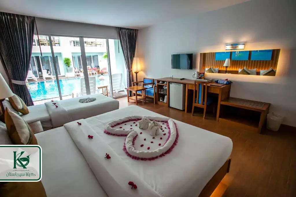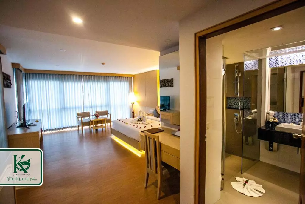اتاق های هتل مجهز به تلویزیون صفحه تخت، سیستم تهویه هوا و کمد هستند.
