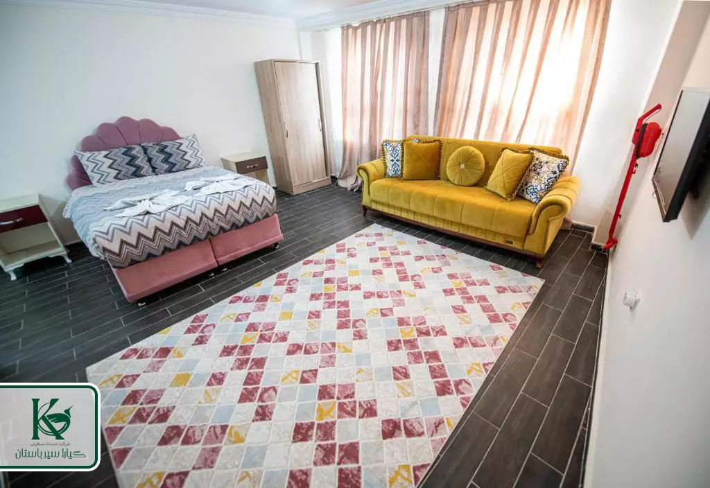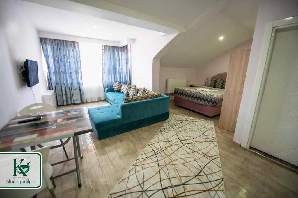 هتل دارای ۴۰ اتاق و ۹۲ تخت است. انواع اتاق های هتل ملودی عبارتند از: اتاق های خانوادگی بزرگ، اتاق های سه نفره با نمای روبه کوه، اتاق کینگ دارای بالکن، سوئیت خانوادگی و اتاق های استاندارد مبله. در اتاق های هتل ملودی امکانات رفاهی از قبیل Wi-Fi رایگان، تلویزیون با کانال های ماهواره ای، مینی بار، تهویه مطبوع و کمد لباس وجود دارد. اتاق ها دارای حمام اختصاصی مجهز به دوش، سشوار، حوله و لوازم بهداشتی هستند. سیستم اعلام حریق موجود در اتاق ها از بروز هر گونه حوادث احتمالی جلوگیری می کند. سیستم گرمایشی و سرمایشی مناسب نیز دمای اتاق ها را در حد مطلوب نگه می دارد. در این هتل ساعت ورود به اتاق ساعت ۱۴ و ساعت تحویل اتاق ۱۲ ظهر است.