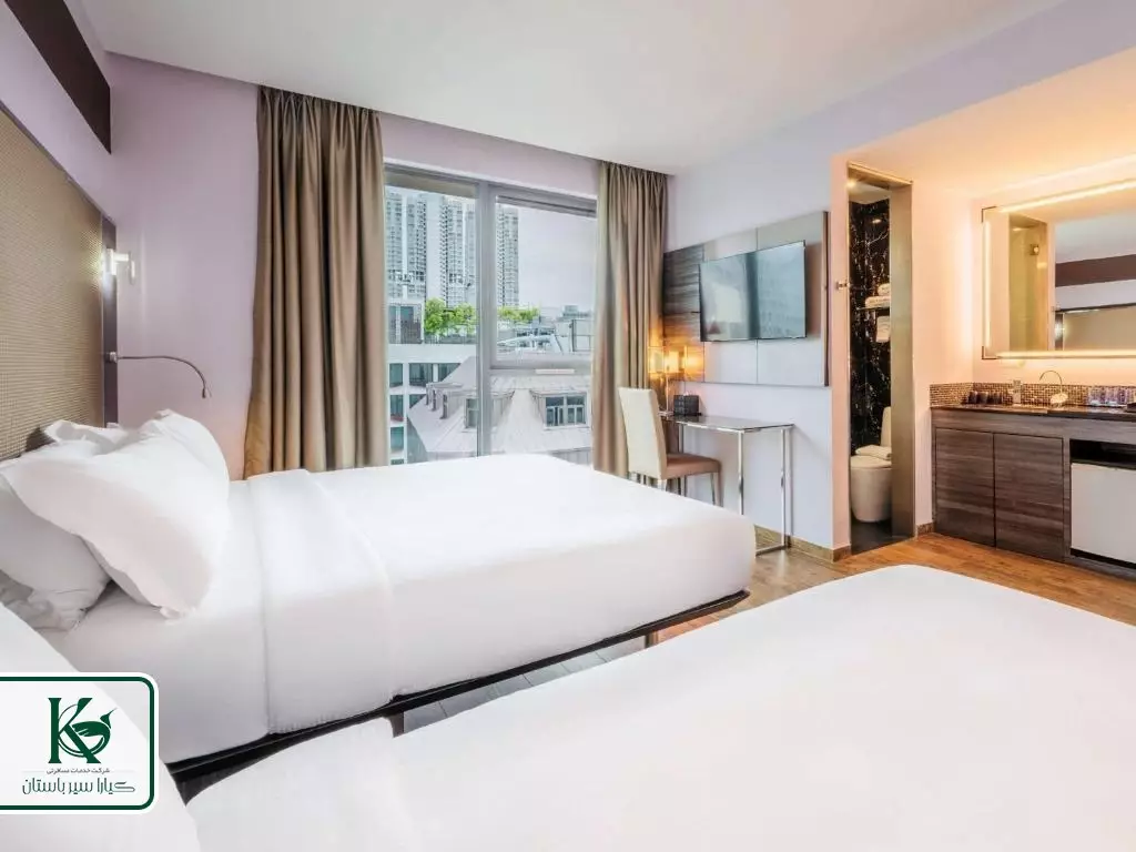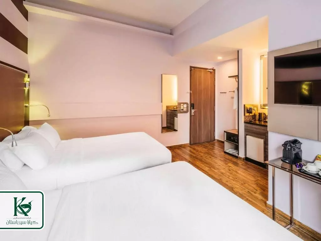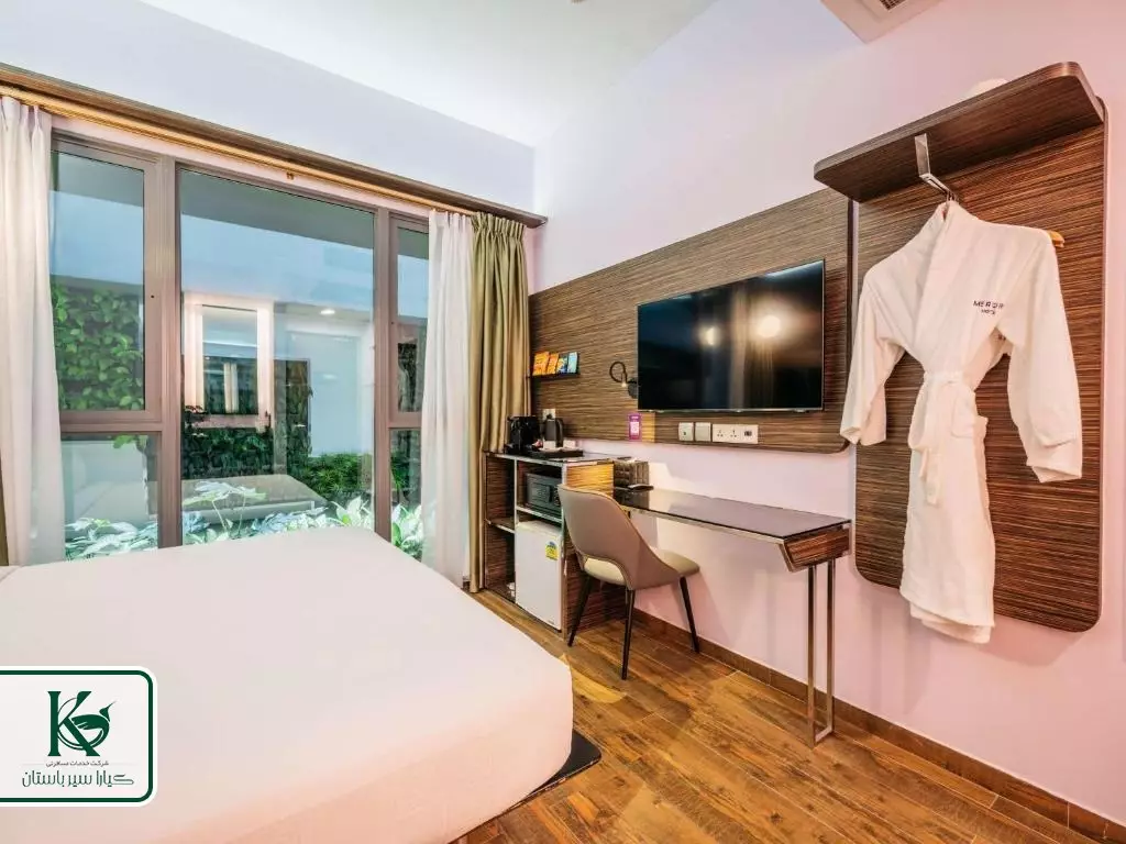 هتل Mercure Singapore Tyrwhitt از 270 اتاق تازه بازسازی شده در رنگ های کلاسیک تشکیل شده است که ظرافت بی انتها و راحتی مدرن را به نمایش می گذارد. پنجرههای آن از کف تا سقف، منظرهای بینظیر از منظره خیابان محلی متمایز را برای مهمانان فراهم میکند. این هتل با داشتن دستهبندی اتاقهای فراوان، آماده تجربه اقامتی بینظیر است تا نیازهای مسافران تفریحی و کاری را برآورده کند. این هتل در جاده Tyrwhitt، 600 متر از منطقه قومی هند کوچک و مرکز خرید 24 ساعته مصطفی فاصله دارد. معبد Kwan Im Thong Hood Cho و Bugis Junction در 1.8 کیلومتری و فرودگاه بین المللی Changi در 14 کیلومتری این هتل قرار دارند. با 4 کیلومتر رانندگی می توان به استادیوم ملی سنگاپور رسید. هر اتاق دارای تهویه مطبوع دارای تلویزیون کابلی صفحه تخت، گاوصندوق، میز و یخچال است. حمام خصوصی شامل دوش و سشوار است.